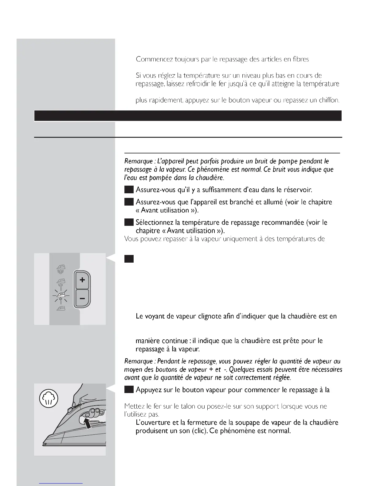 soit nécessaire d’appuyer sur l’activateur de vapeur.