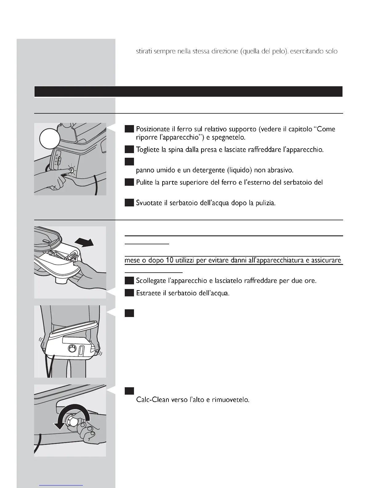MOLTO IMPORTANTE: risciacquate il serbatoio del vapore una volta al