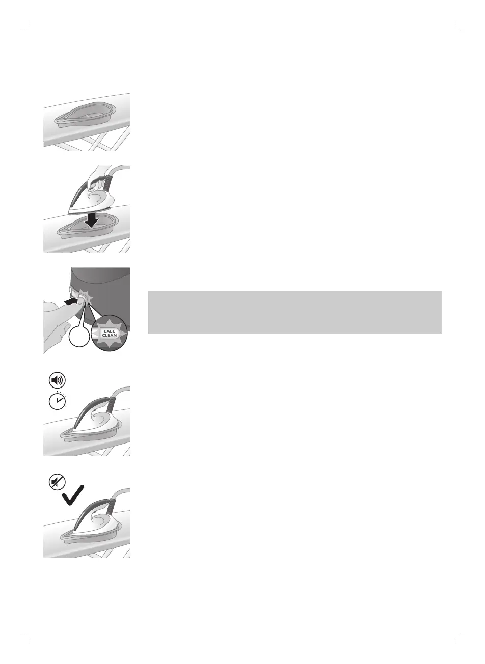 2 Coloque el depósito Calc-Clean sobre la tabla de planchar o cualquier