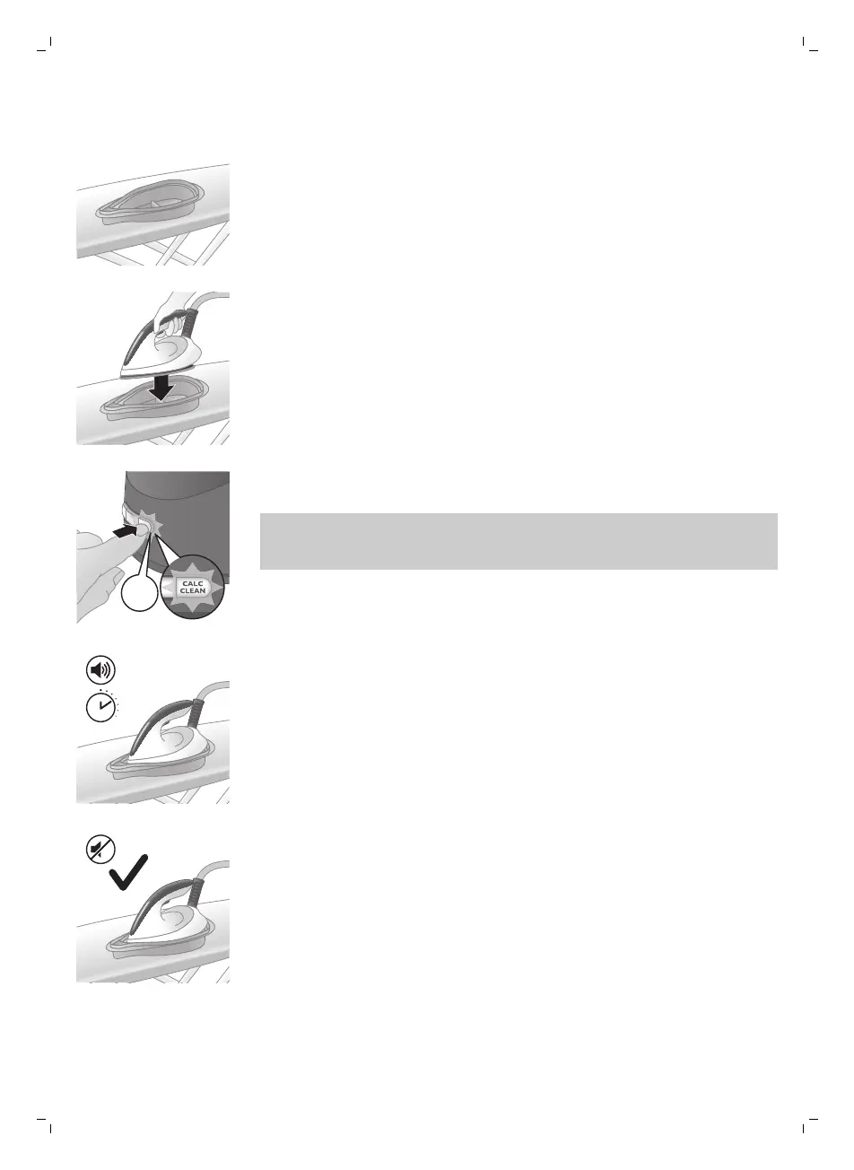 3 Coloque o ferro de forma estável no recipiente Calc-Clean.