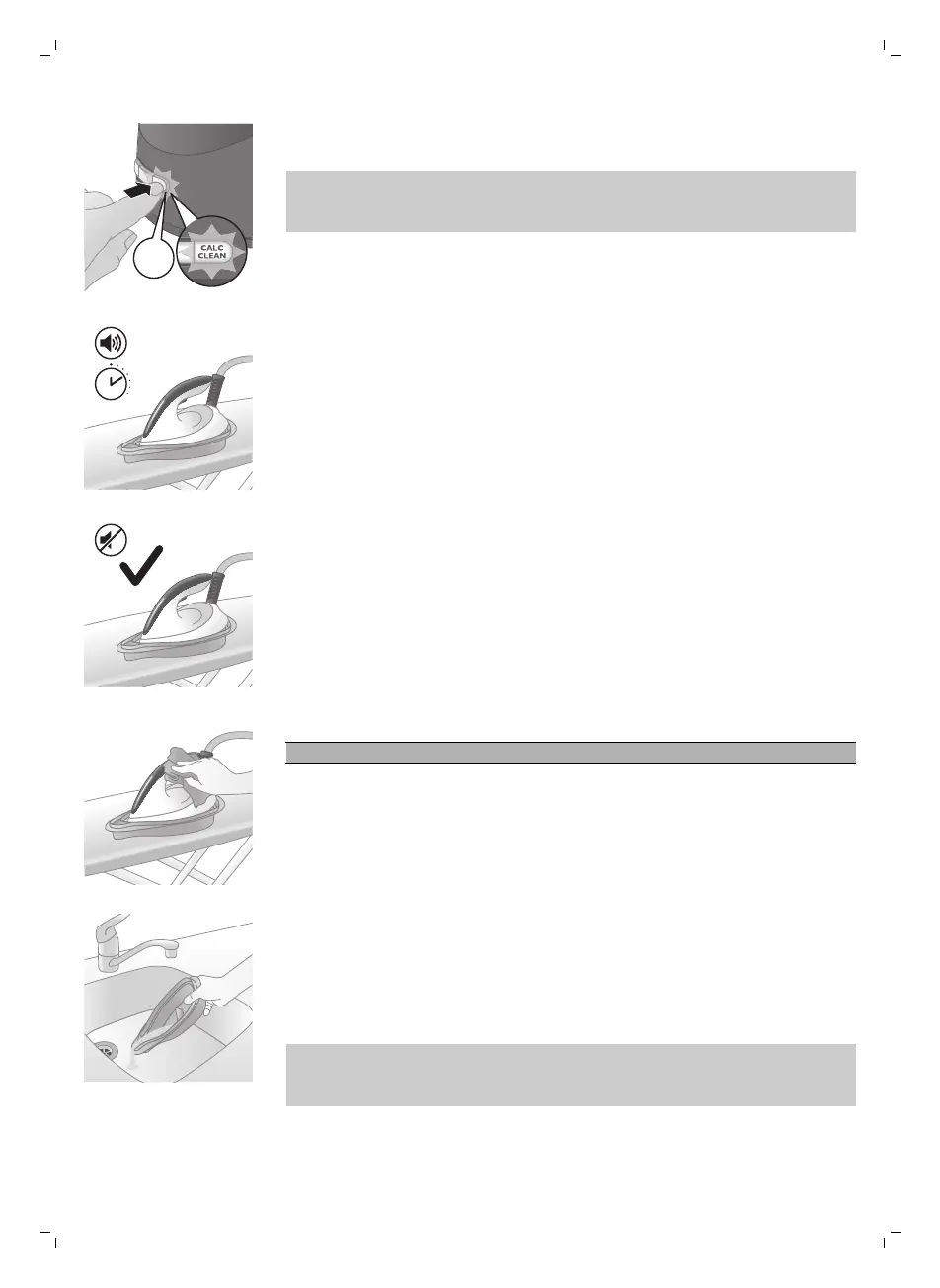 puhdistus on päättynyt, silitysrauta ei anna enää äänimerkkejä, ja CALC-