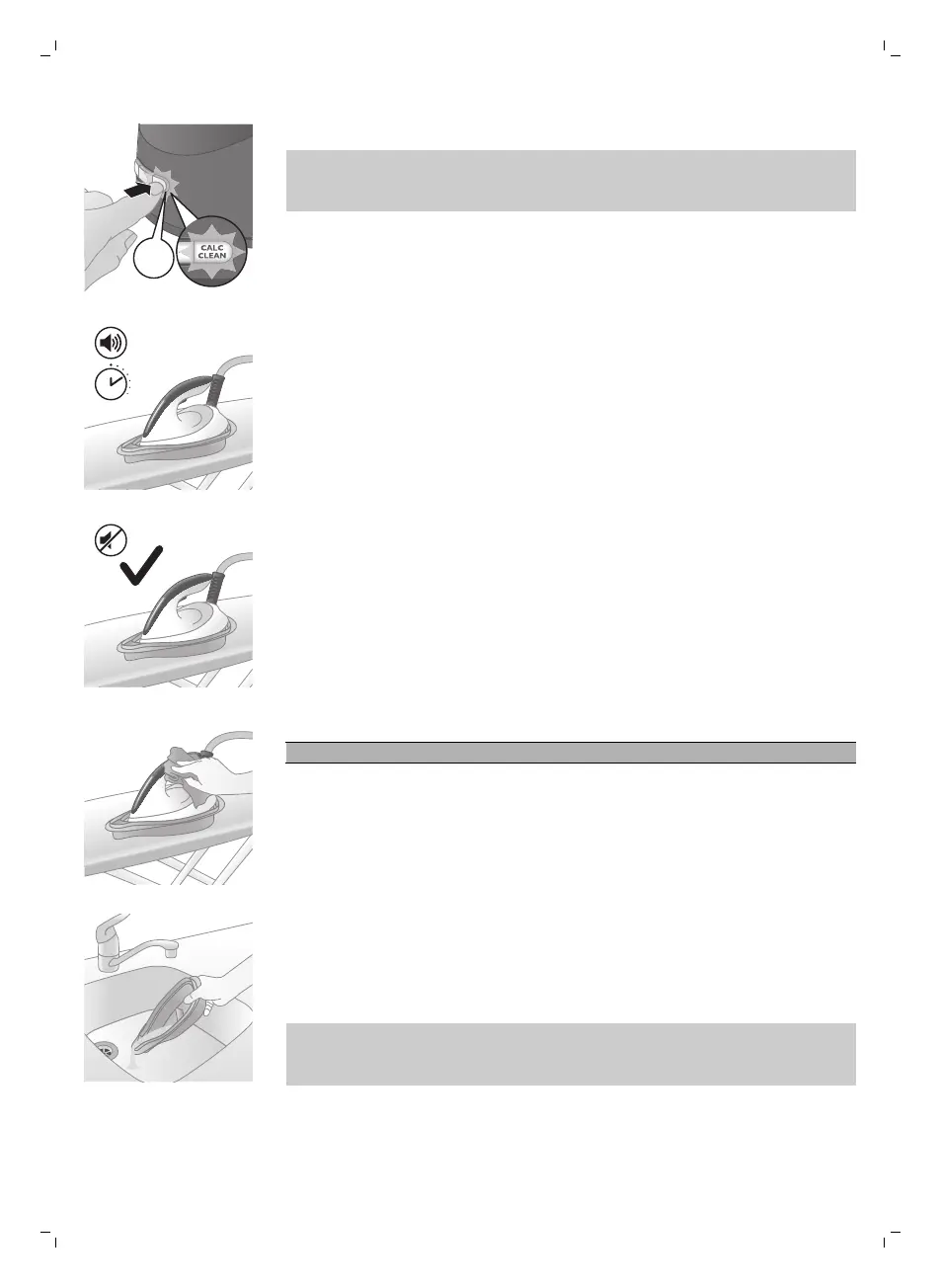strykjärnet på avkalkningsbehållaren under den här processen.