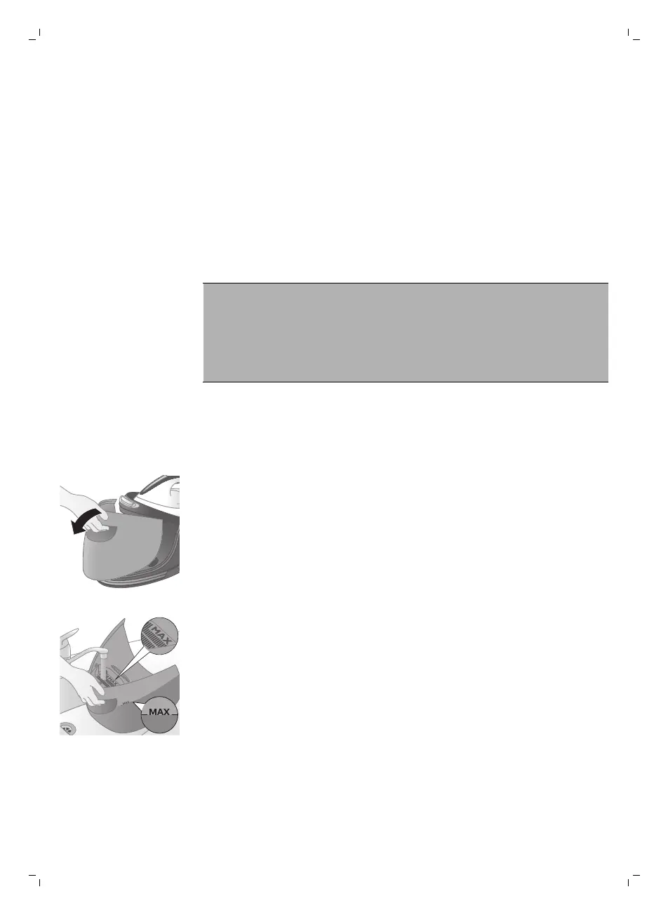 3 Riempite d'acqua il serbatoio fino al livello massimo.