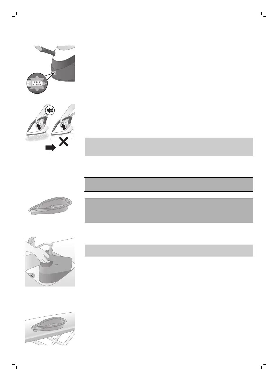 2 Posizionate il contenitore Calc-Clean sull'asse da stiro o un'altra
