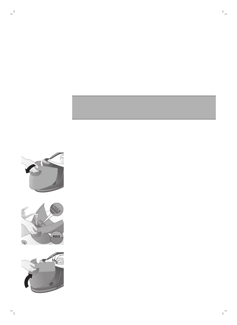 3 Fill the water tank up to the MAX indication.