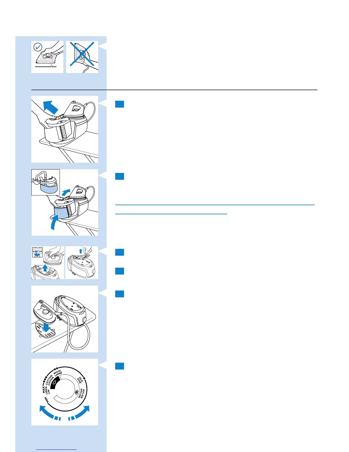 참고: 다림질하는 동안 가열된 다리미를 선반 위에 안전하게 내려