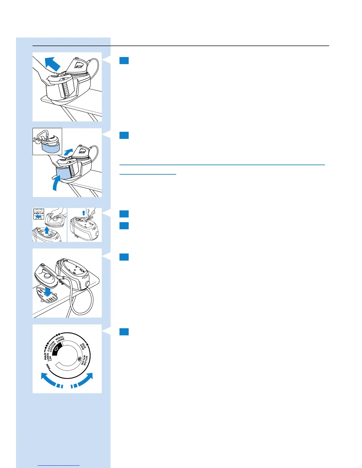 1 將蒸汽發生器放在穩固及水平的表面上,例如熨燙板上堅硬的地