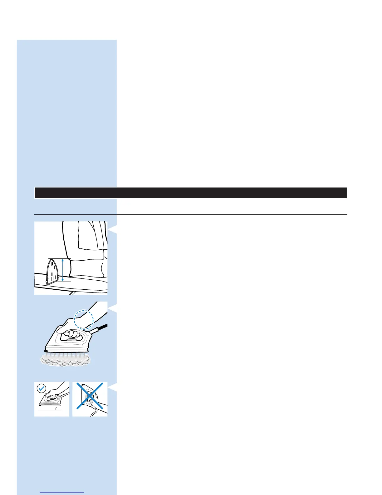 将烫衣板设定于正确的高度。站立时,肘部和熨衣板的距离应为 27