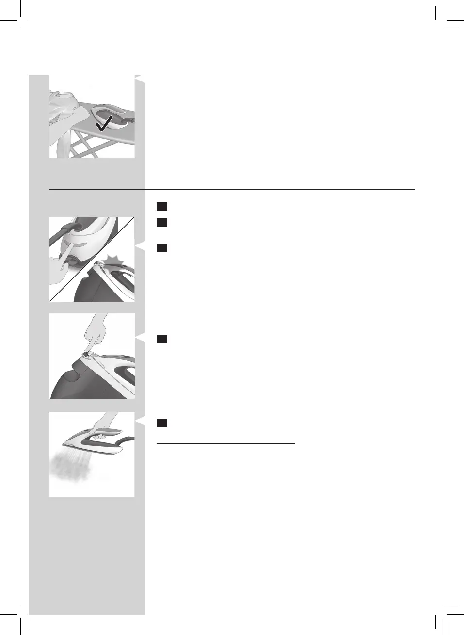 5 Mantenha o botão de vapor premido para começar a engomar.