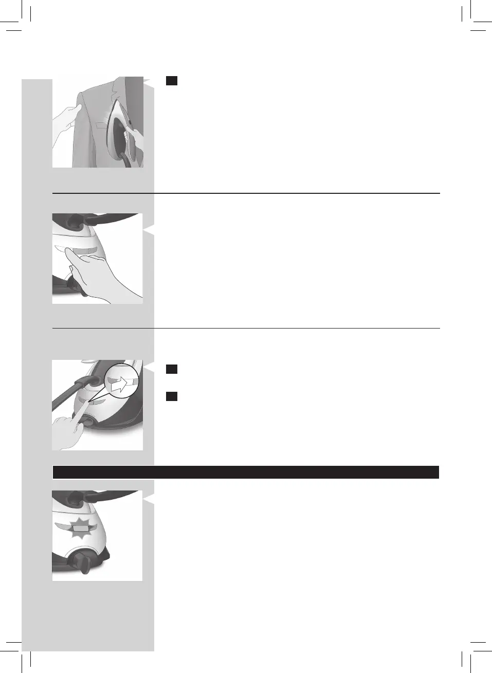 1 Hold strygejernet lodret, tryk på dampudløseren, og berør forsigtigt