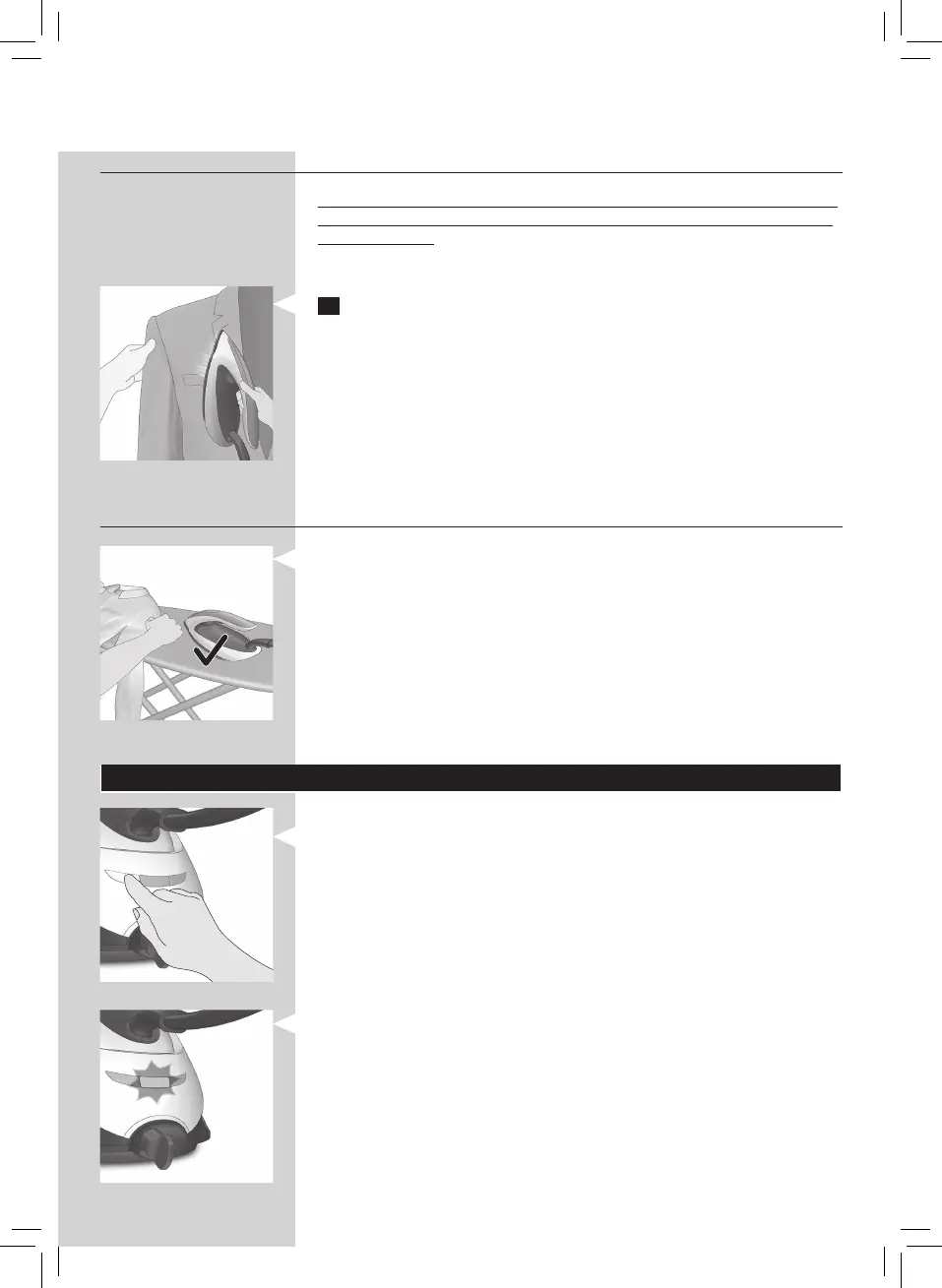 Le fer émet de la vapeur chaude. N’essayez jamais d’enlever les plis d’un vêtement