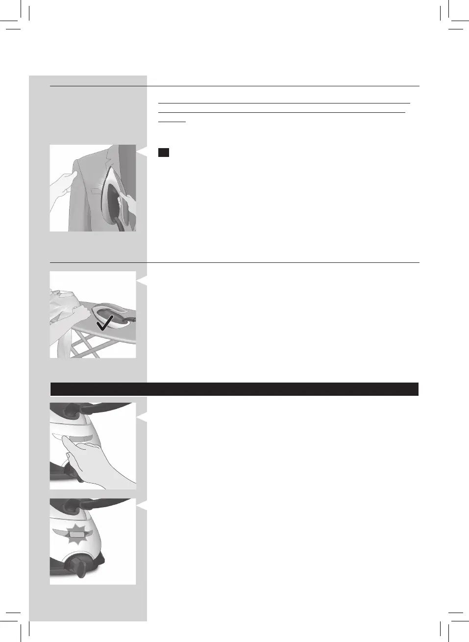 1 Tenete il ferro in posizione verticale, premete il colpo di vapore