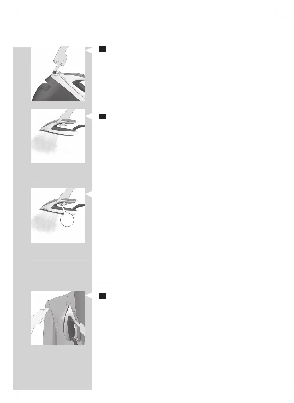 1 Hold the iron in vertical position, press the steam trigger and touch the