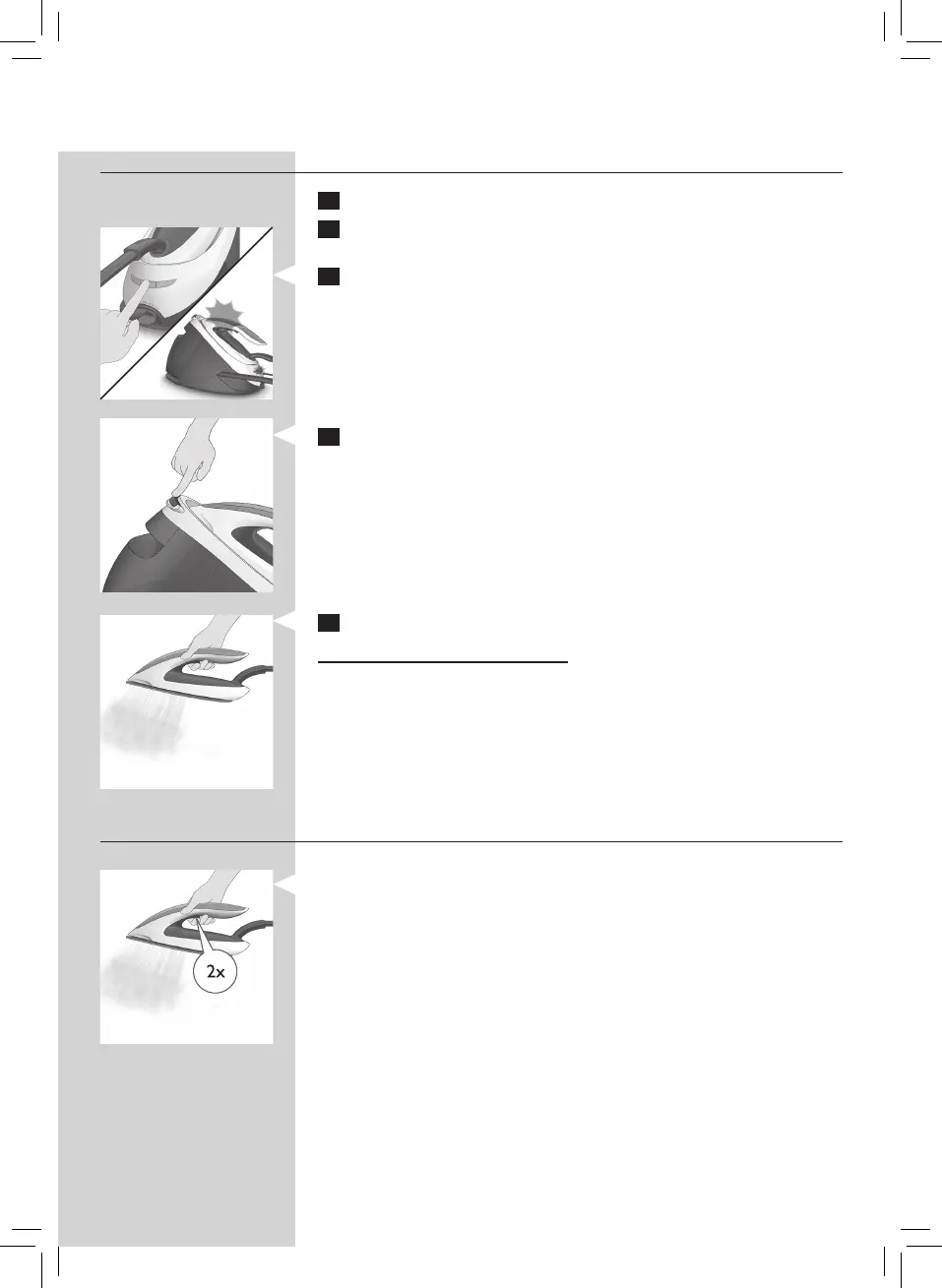 5 Mantenha o botão de vapor premido para começar a engomar.