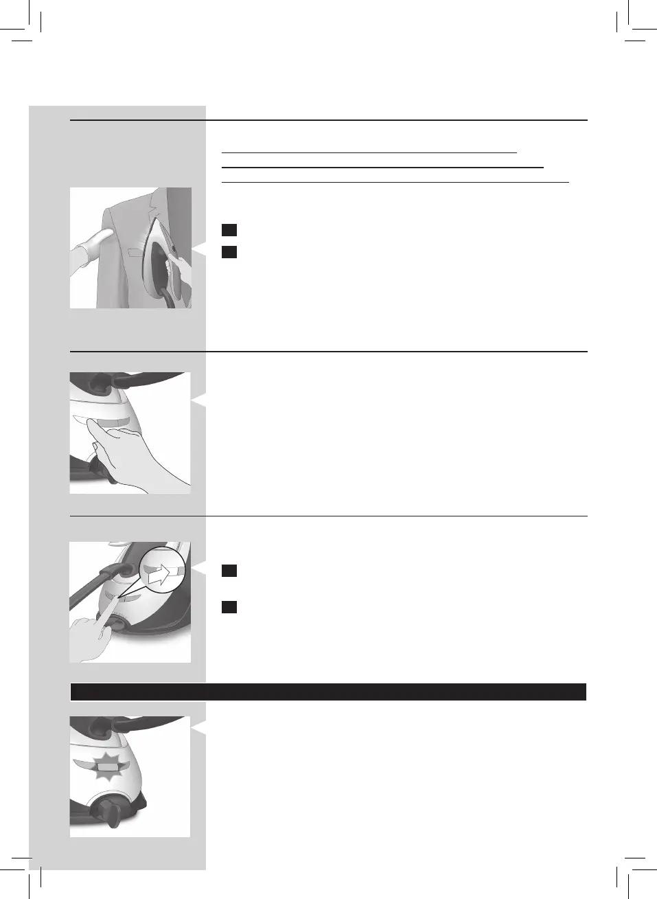 2 Pitele silitysrautaa pystysuorassa, paina höyrypainiketta ja