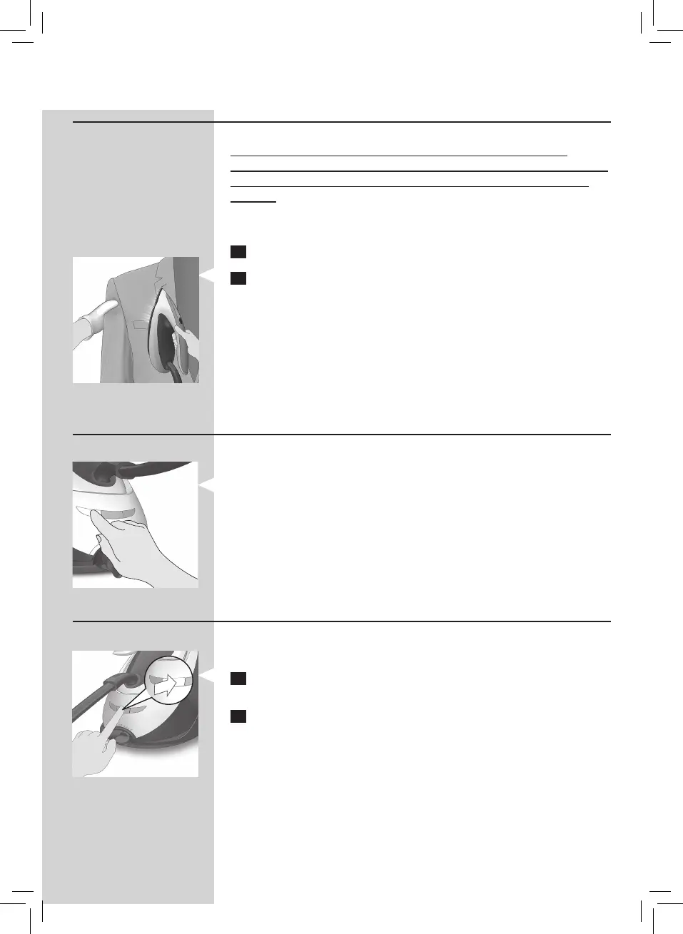 2 Hold strykejernet i vertikal posisjon, trykk på