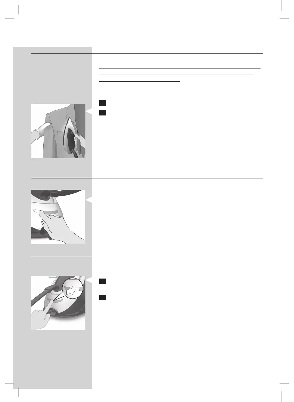 2 Håll strykjärnet vertikalt, tryck på ångaktivatorn och håll