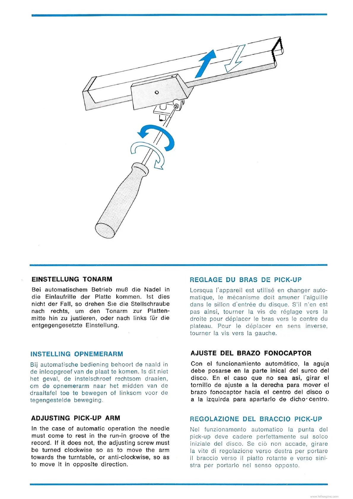 REGOLAZIONE DEL BRACCIO PICK-UP