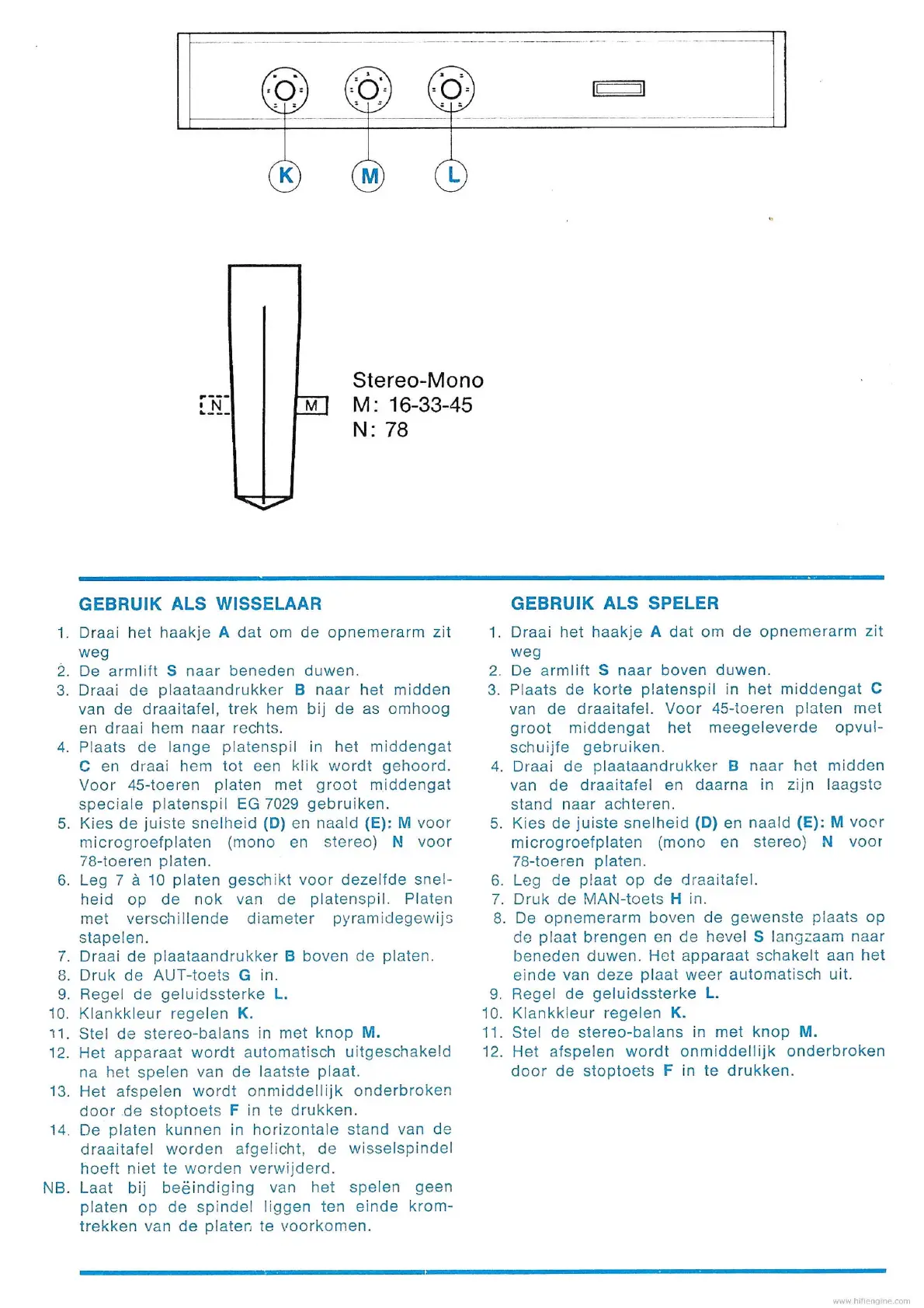 speciale platenspil EG 7029 gebruiken.