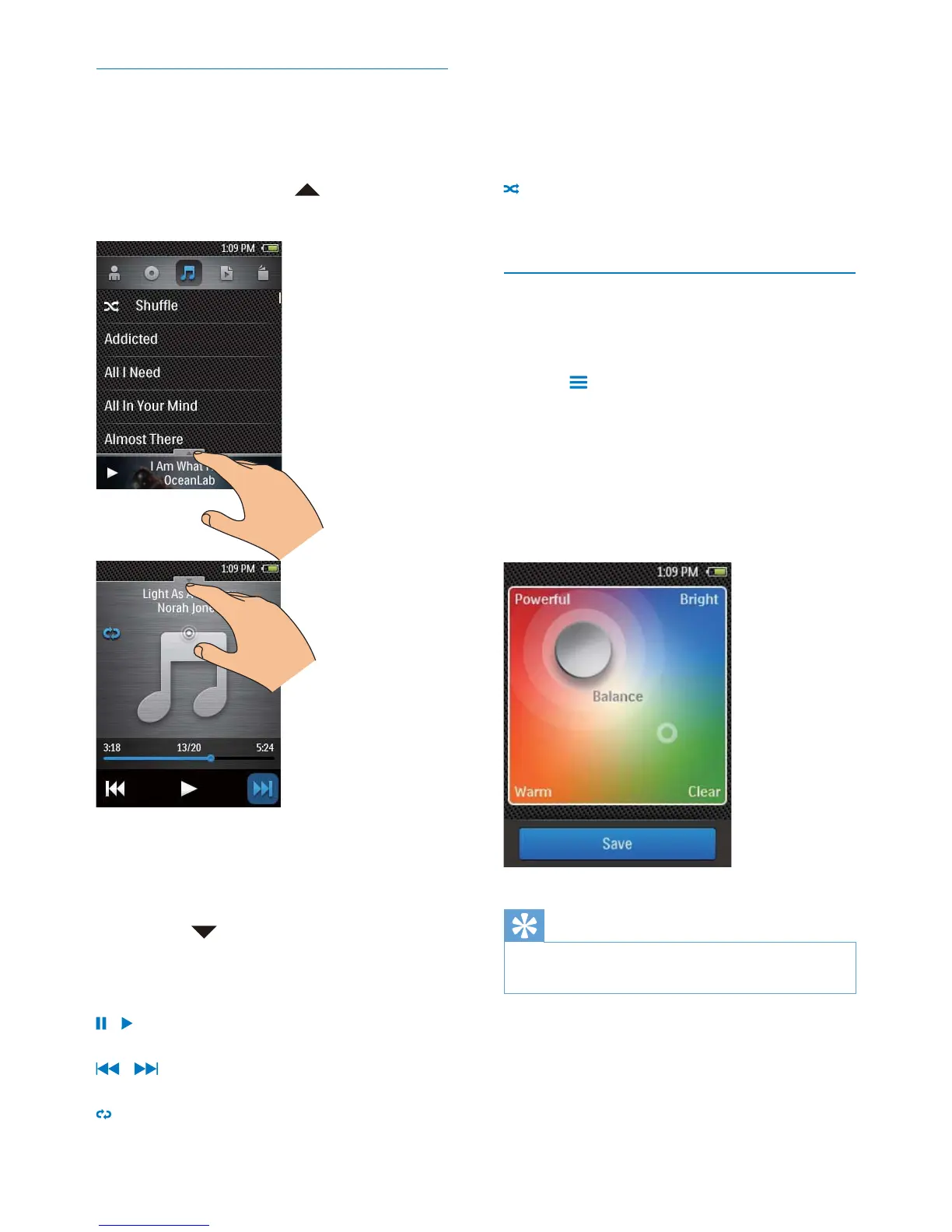 Tap to skip songs.