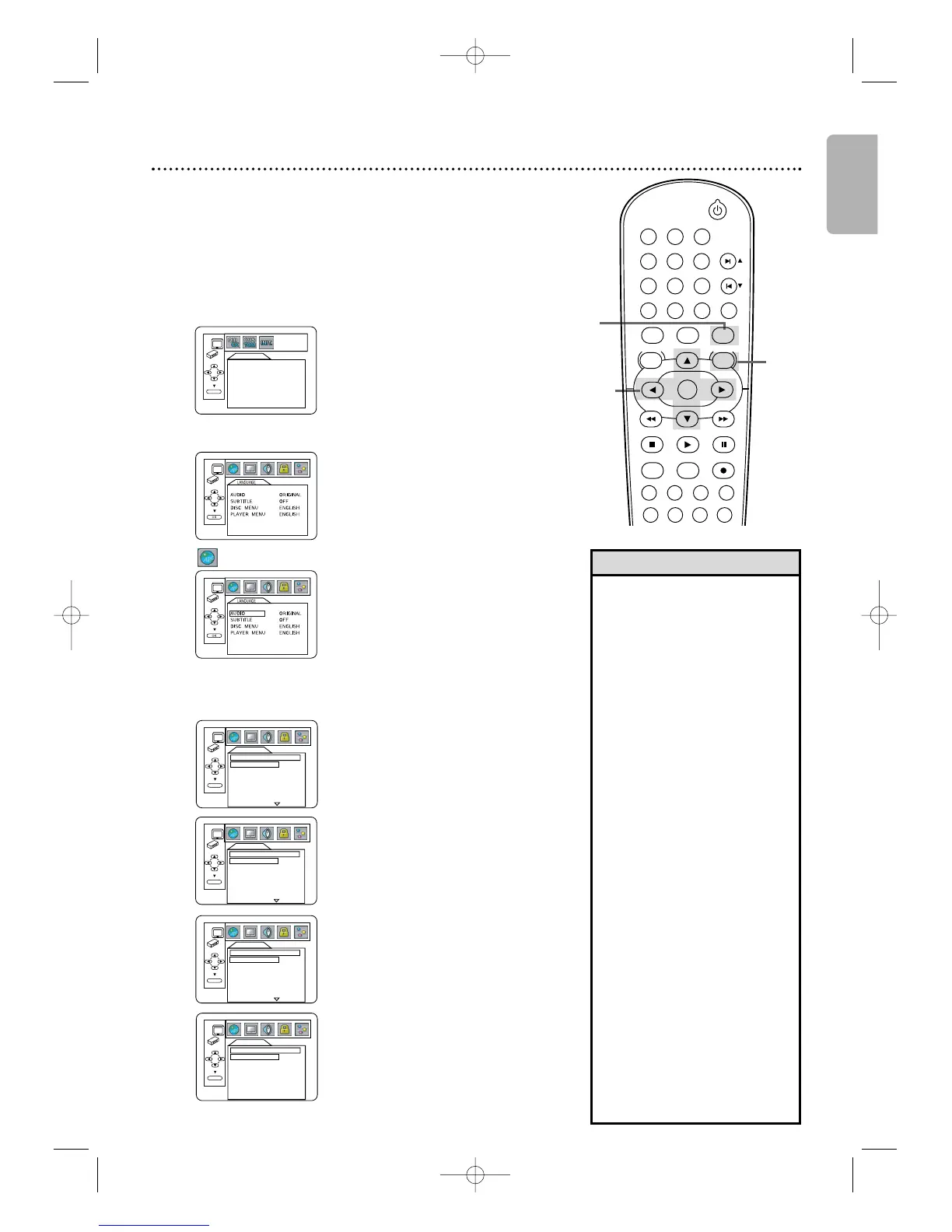 setup menus of the DVD player.