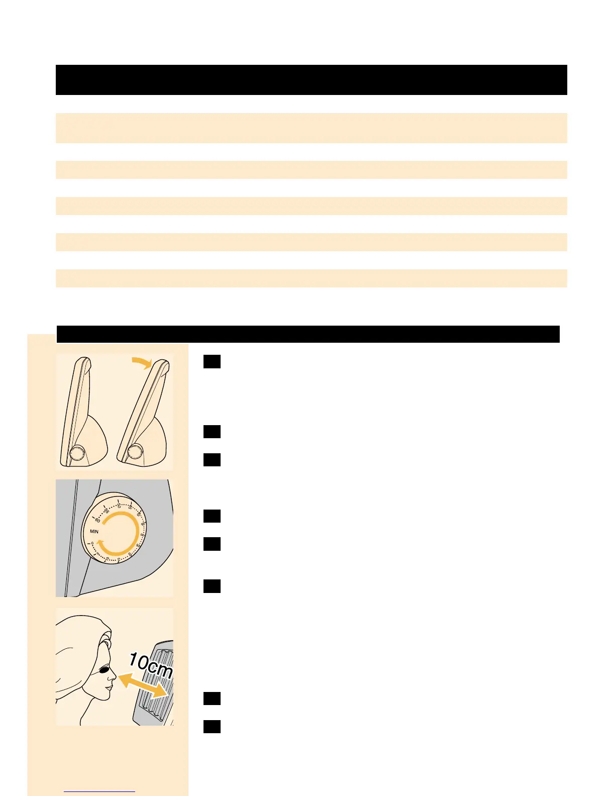 ◗ Der Abstand zwischen Ihrem Gesicht und den UV-Röhren sollte
