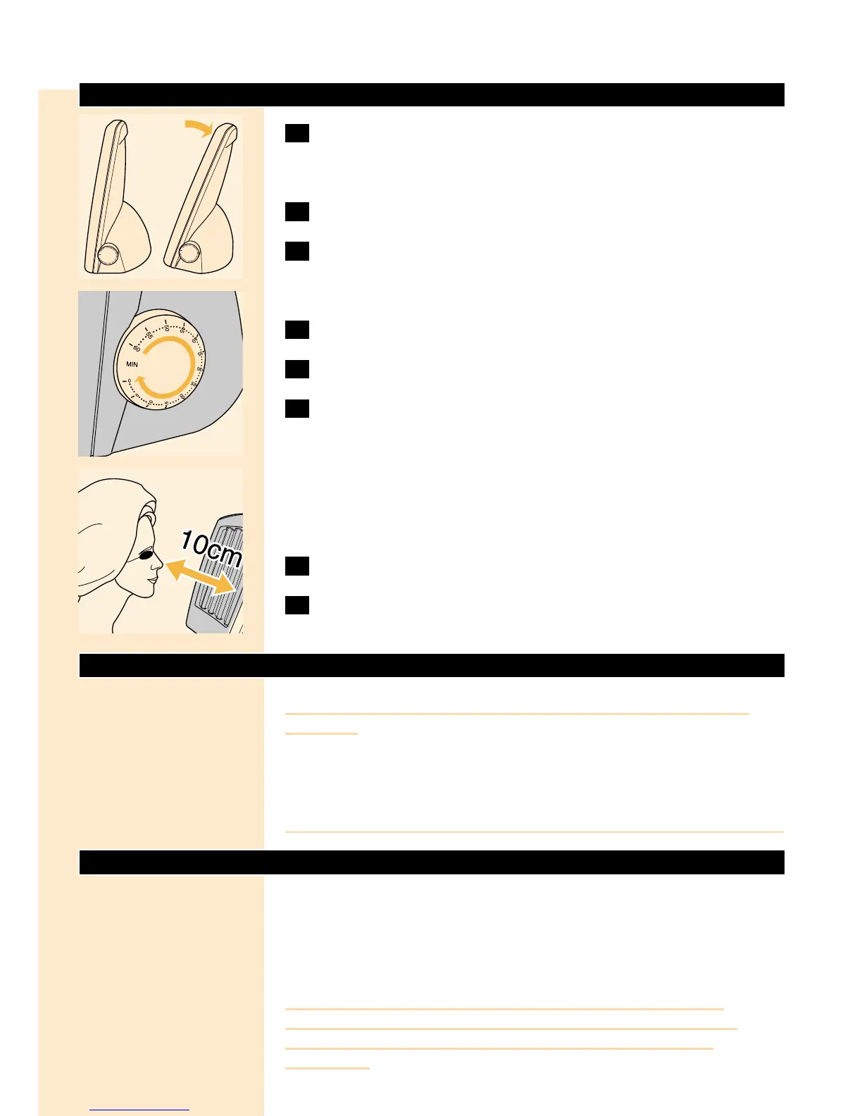 ◗ Avstanden mellom ansiktet og solarierørene skal være 10 cm.