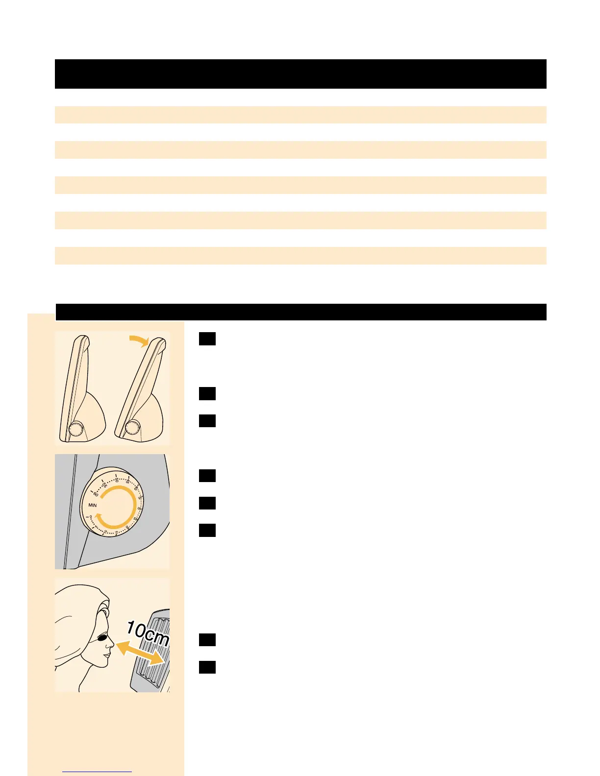 ◗ Afstanden mellem ansigt og lamper skal være 10 cm.