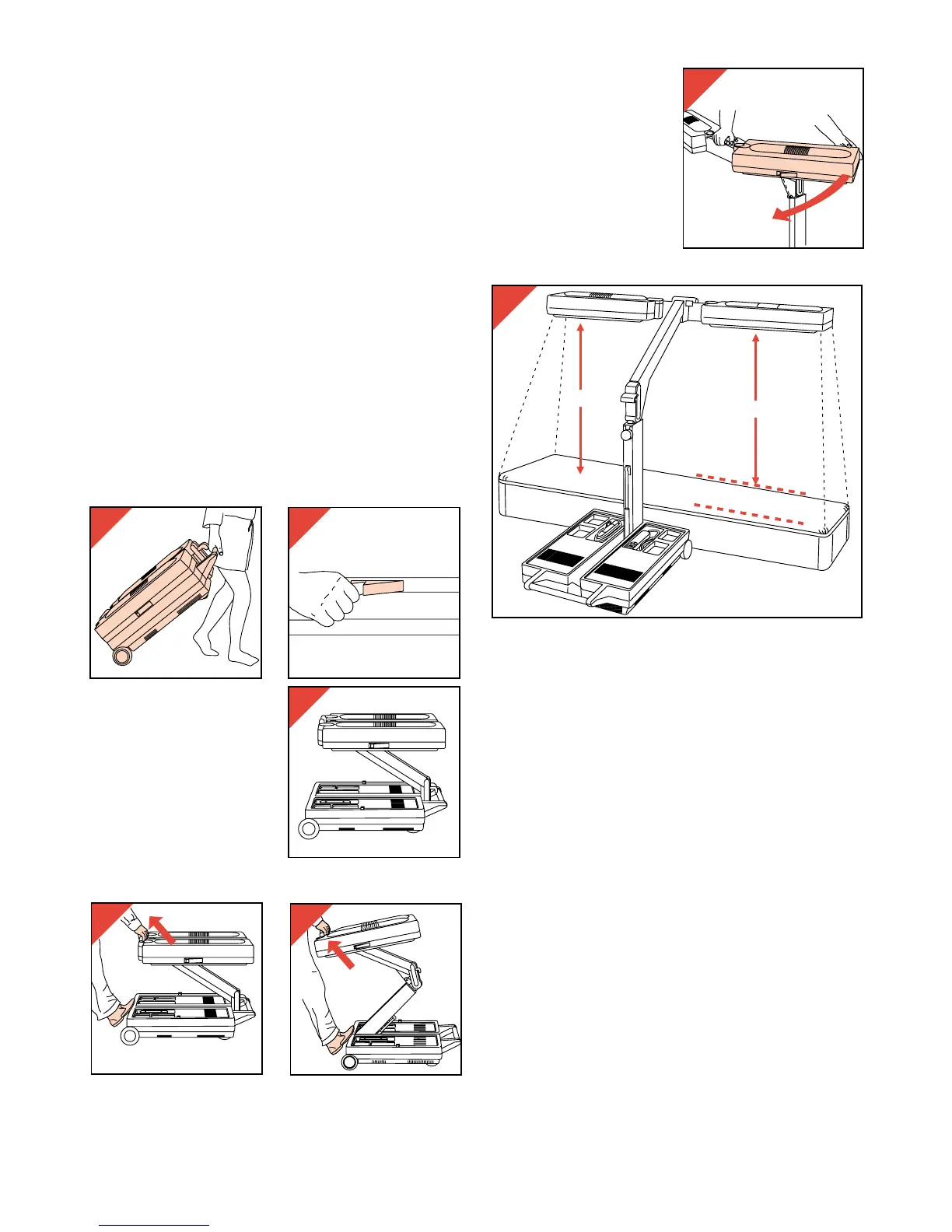 - Levez le support télescopique D et la partie supérieure du