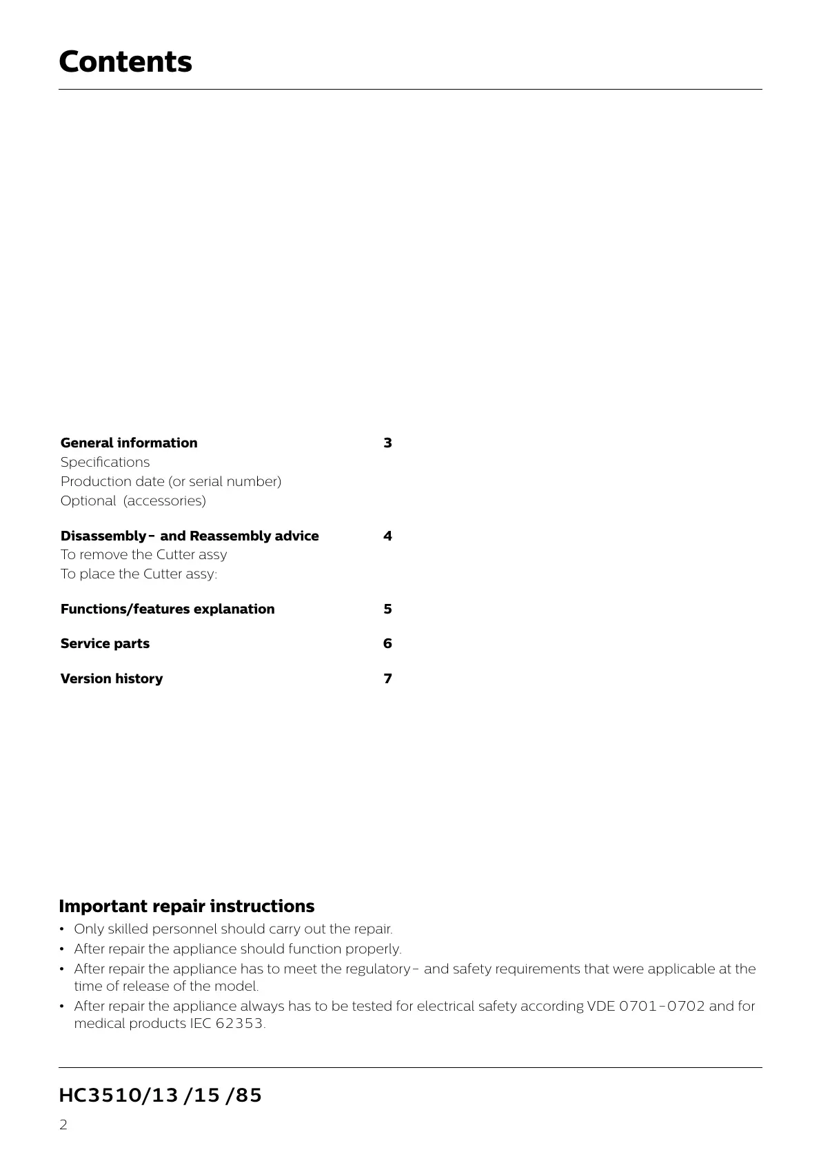 • After repair the appliance always has to be tested for electrical safety according VDE 0701-0702 and for