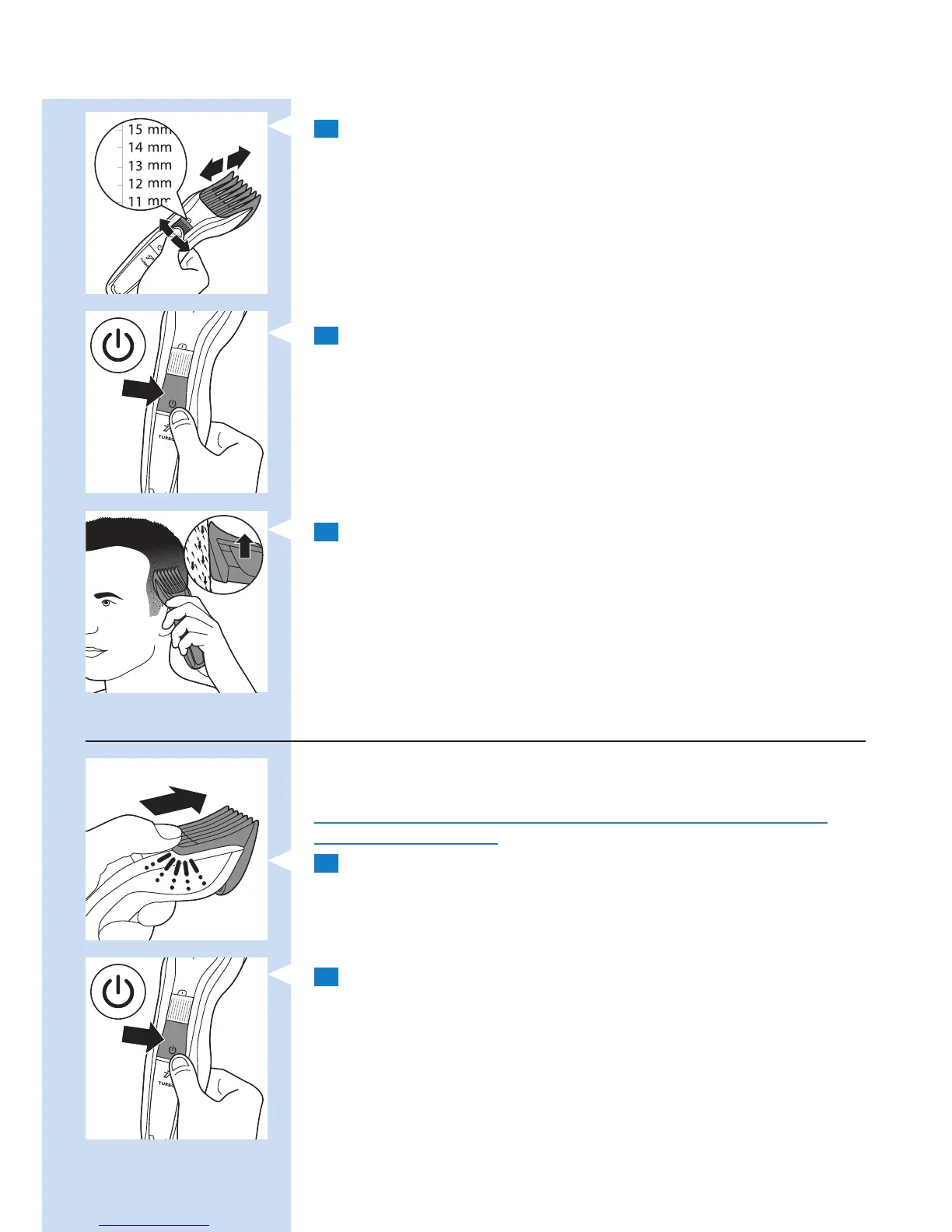 Vær meget forsigtig ved trimning uden kam, da skærhovedet fjerner