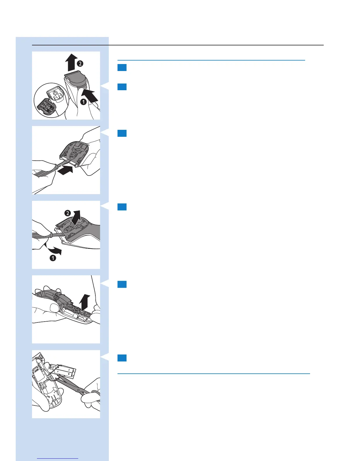 6 Corte los cables para separar las baterías recargables del aparato.
