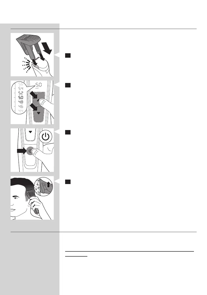 您可以不裝梳具,只用鬢角刀修剪貼近皮膚 (0.5 公釐) 的毛髮或修