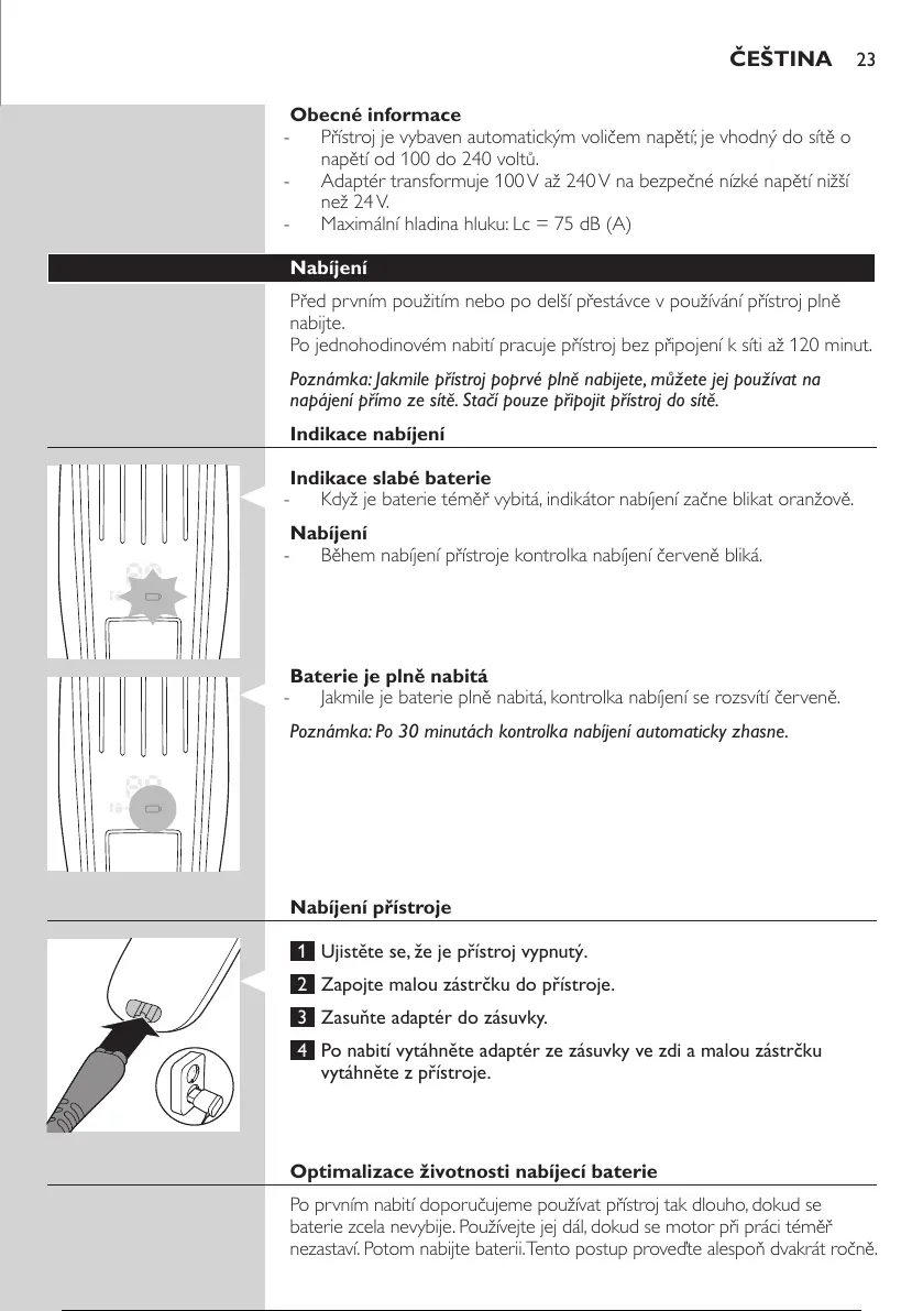 Po prvním nabití doporučujeme používat přístroj tak dlouho, dokud se