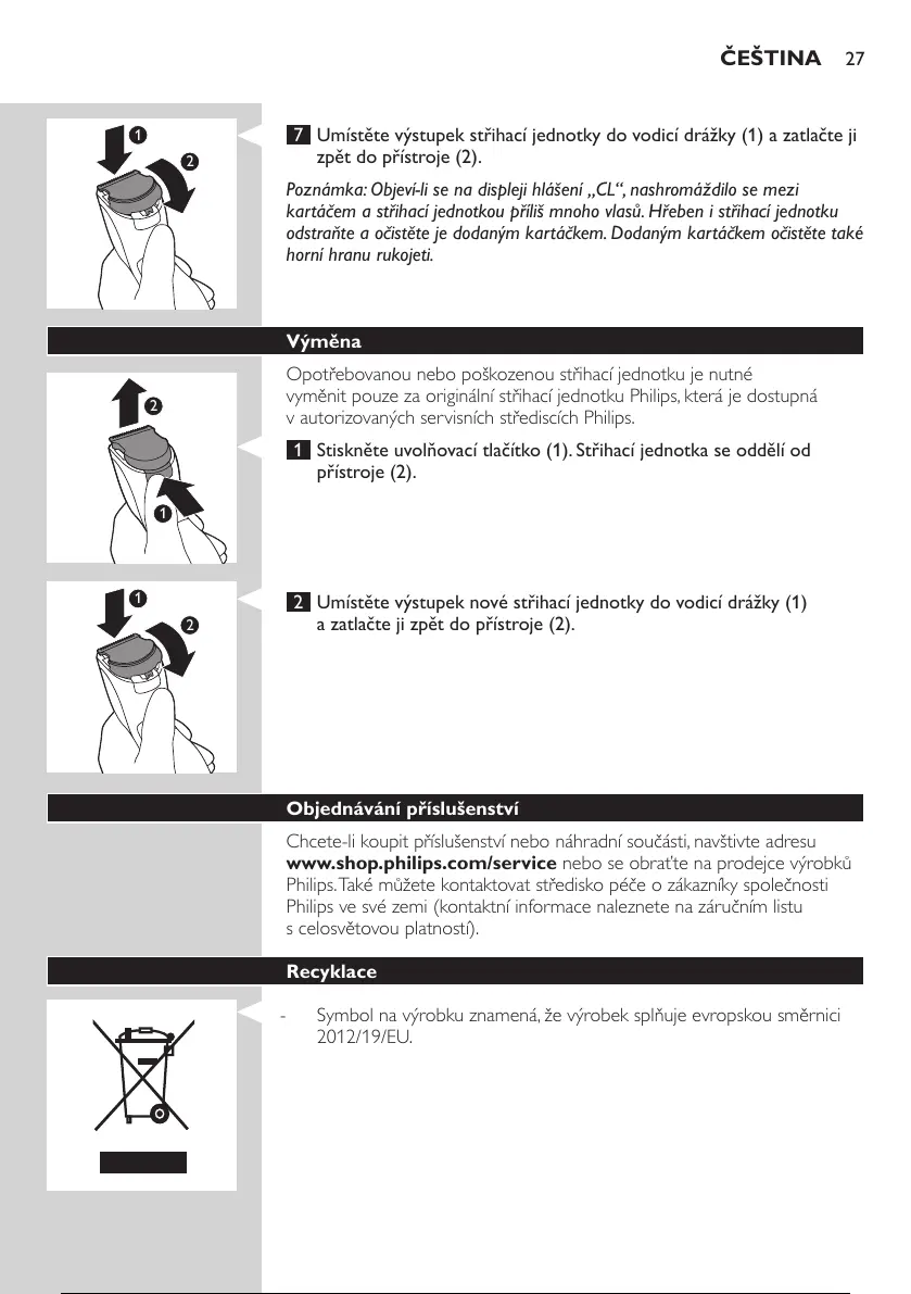 vyměnit pouze za originální střihací jednotku Philips, která je dostupná