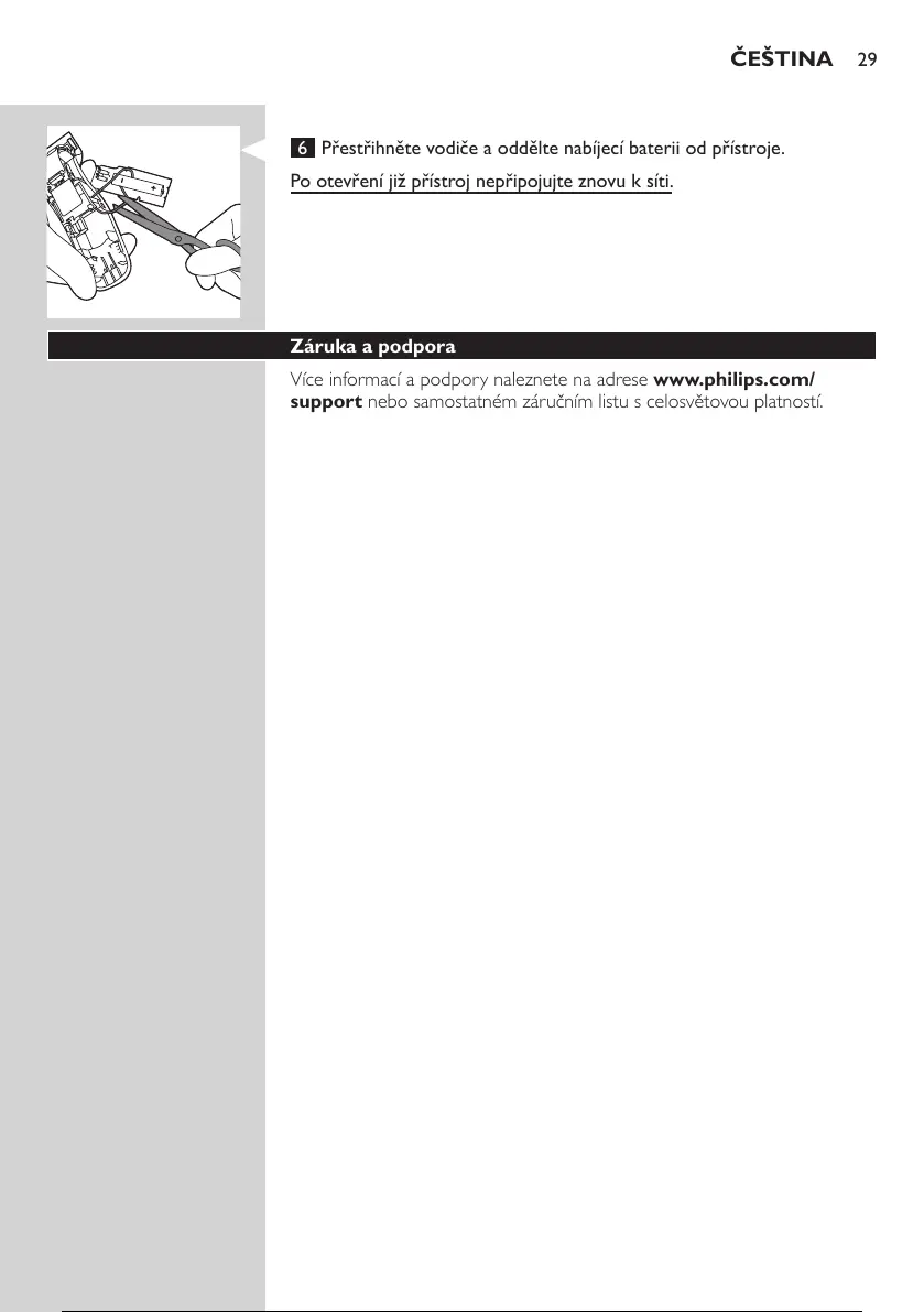 6 Přestřihněte vodiče a oddělte nabíjecí baterii od přístroje.