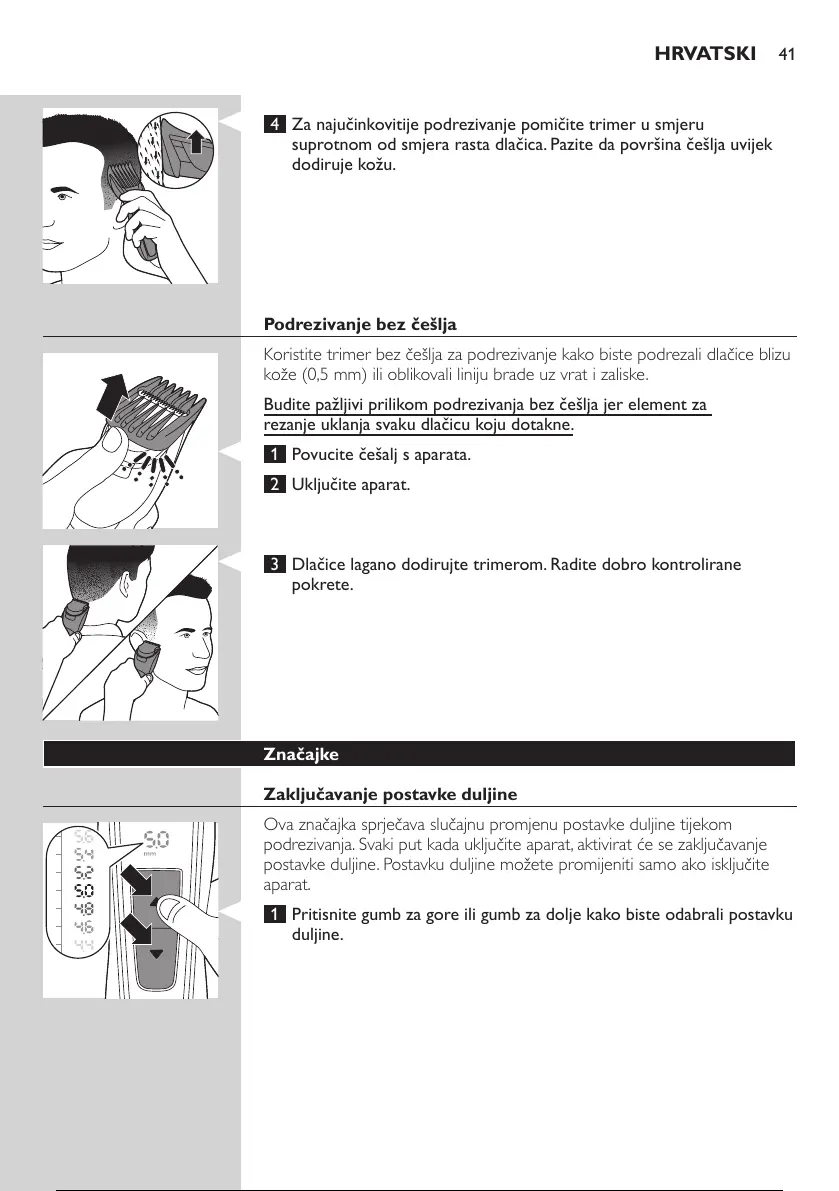 Koristite trimer bez češlja za podrezivanje kako biste podrezali dlačice blizu