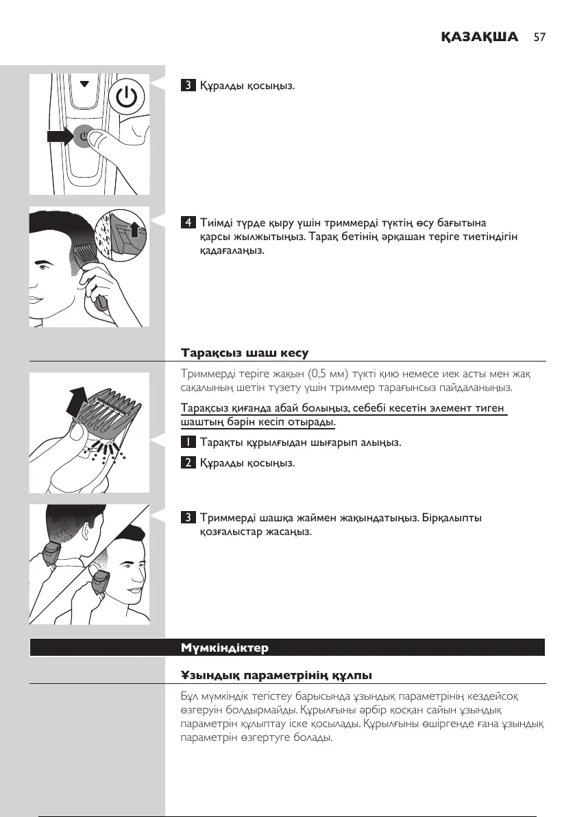 сақалының шетін түзету үшін триммер тарағынсыз пайдаланыңыз.