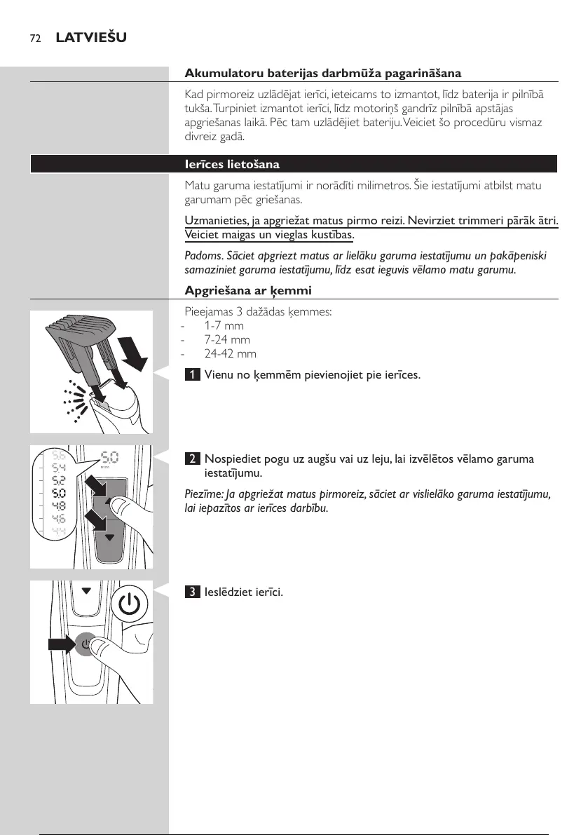Piezīme: Ja apgriežat matus pirmoreiz, sāciet ar vislielāko garuma iestatījumu,