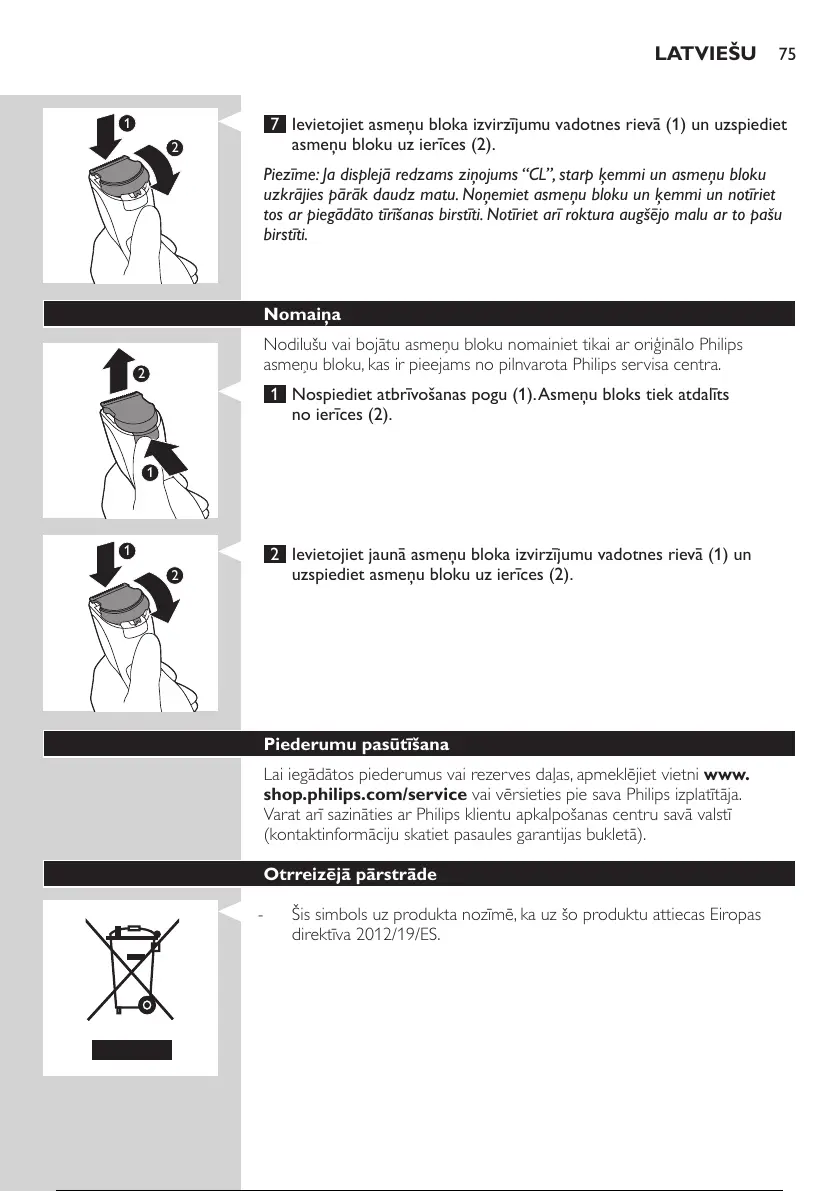 Nodilušu vai bojātu asmeņu bloku nomainiet tikai ar oriģinālo Philips