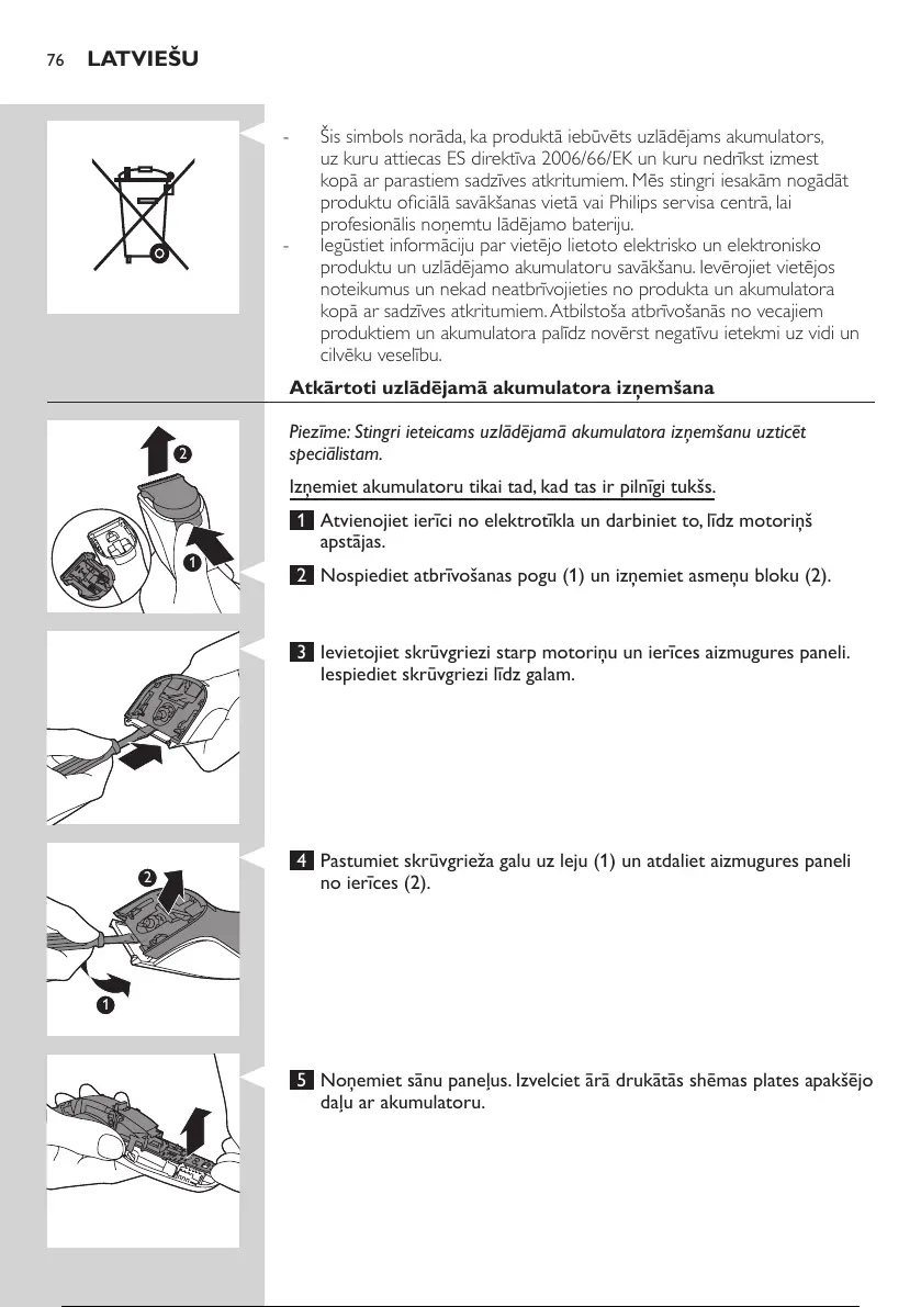 Piezīme: Stingri ieteicams uzlādējamā akumulatora izņemšanu uzticēt