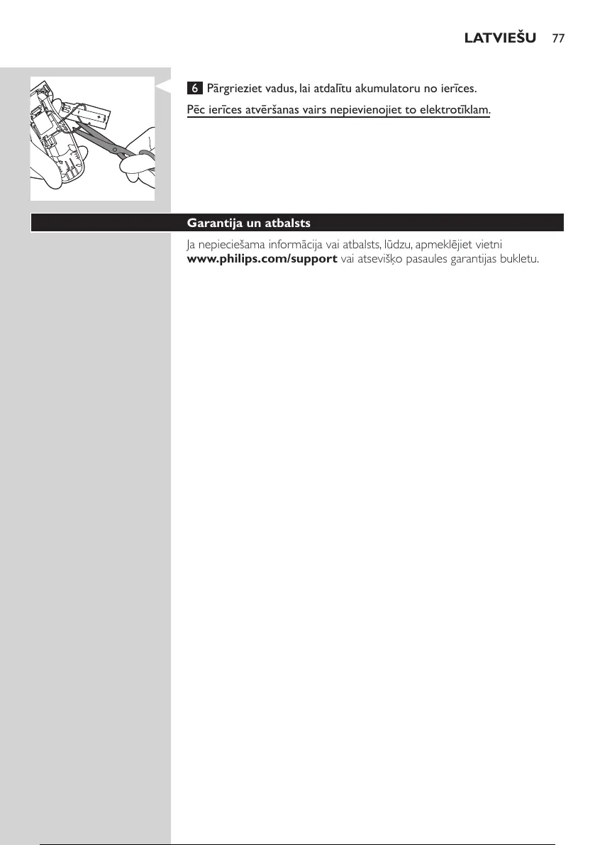 www.philips.com/support vai atsevišķo pasaules garantijas bukletu.