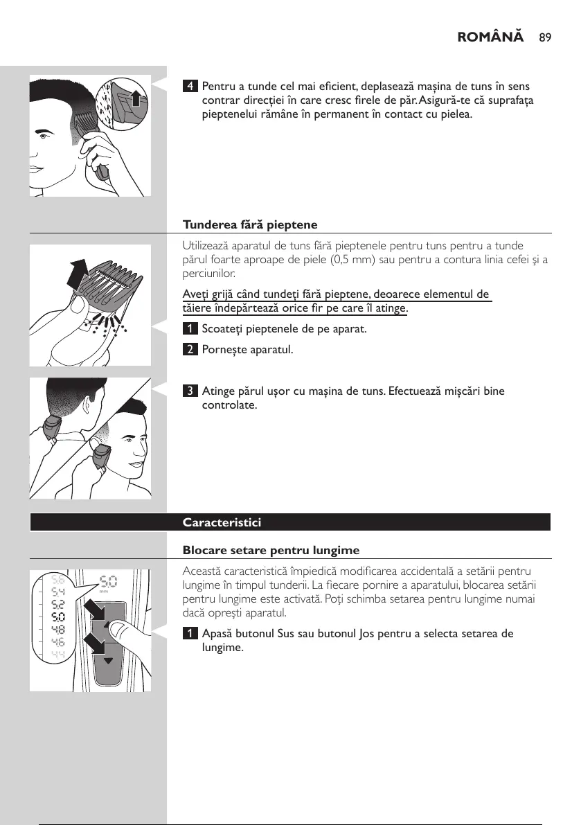 lungime în timpul tunderii. La ecare pornire a aparatului, blocarea setării