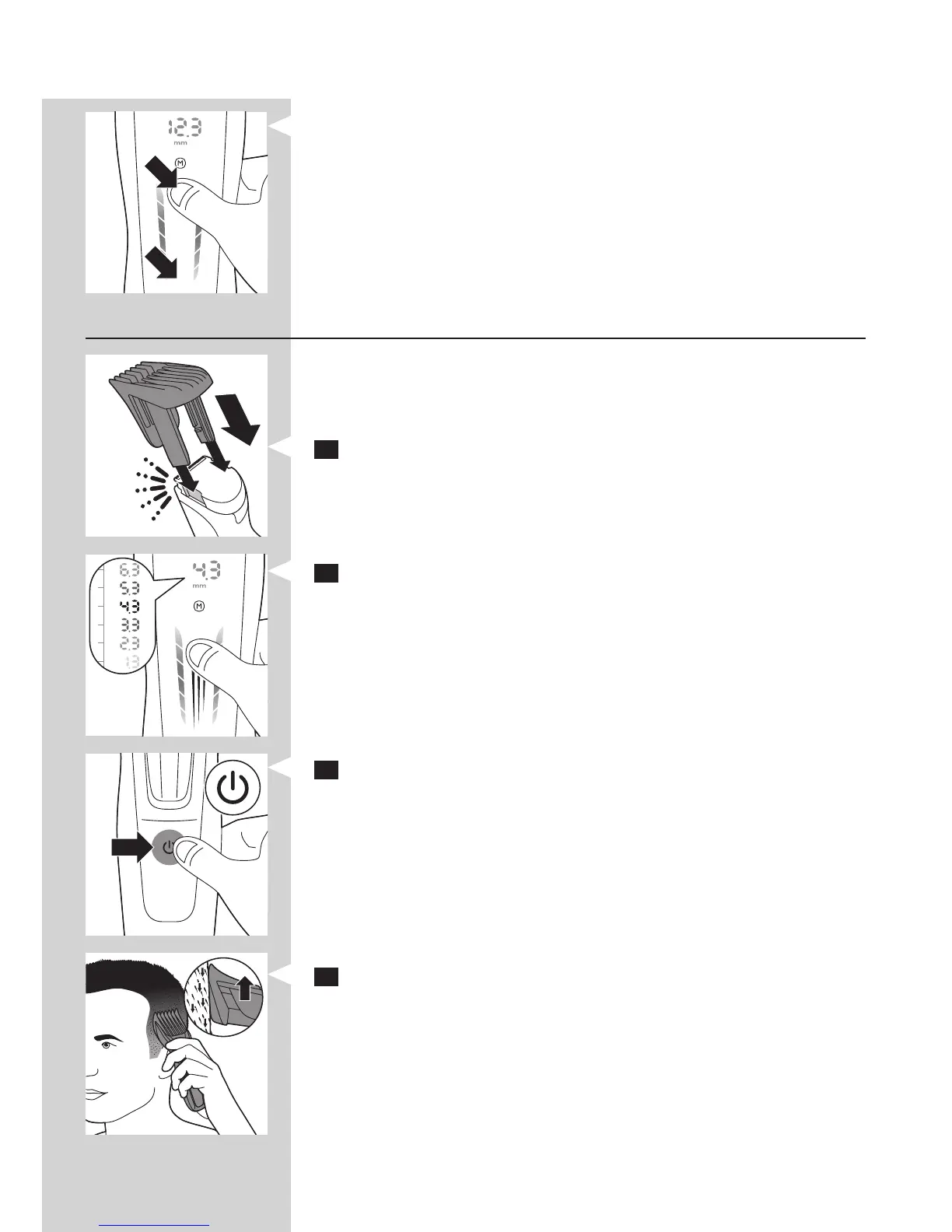 Haarwuchsrichtung führen. Achten Sie darauf, dass der Kammaufsatz