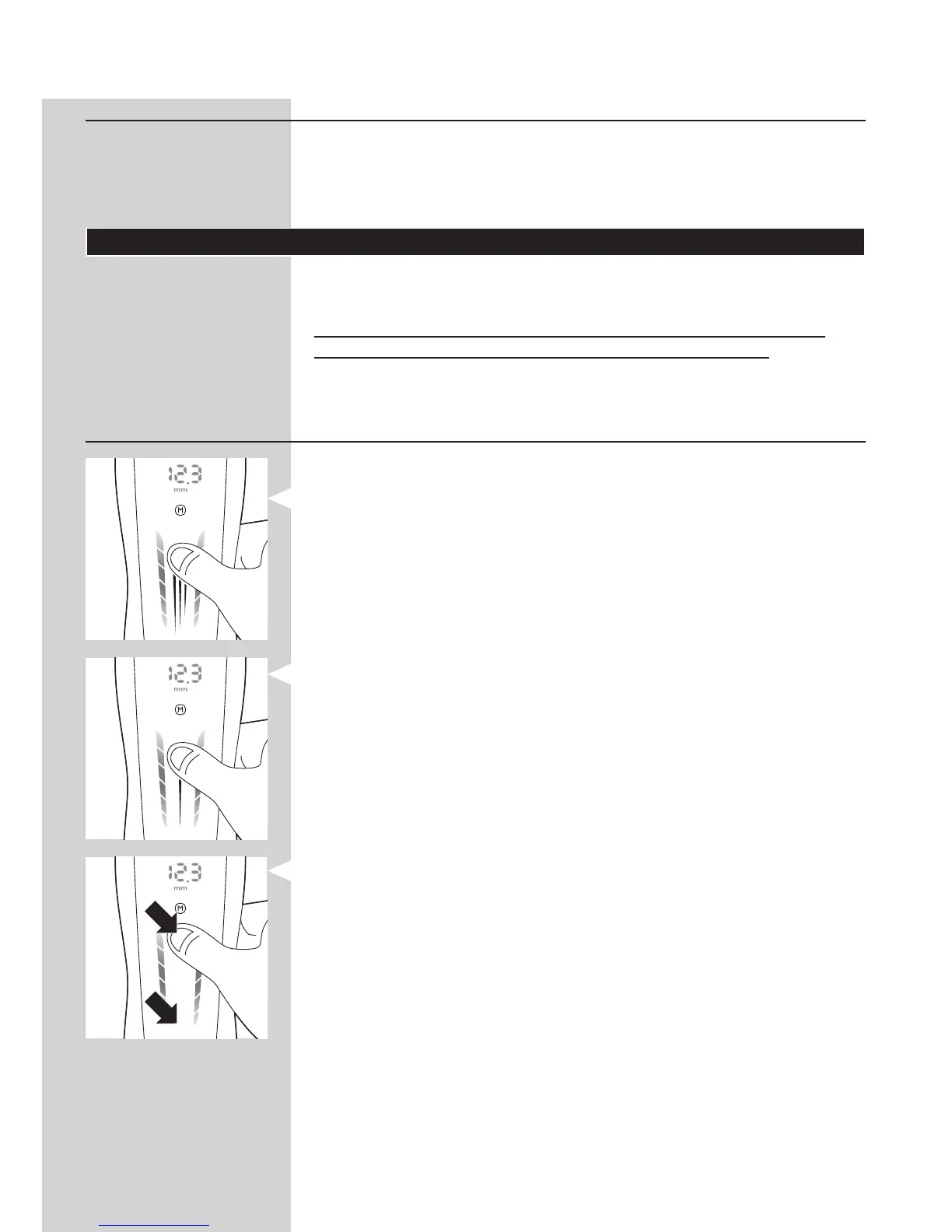 tai yläosaa. Voit selata pituusasetuksia automaattisesti 0,1 mm:n välein