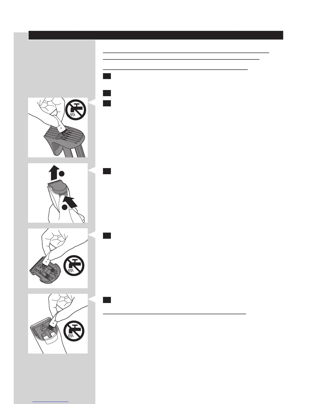 4 Paina vapautuspainiketta (1). Teräyksikkö irtoaa laitteesta (2).