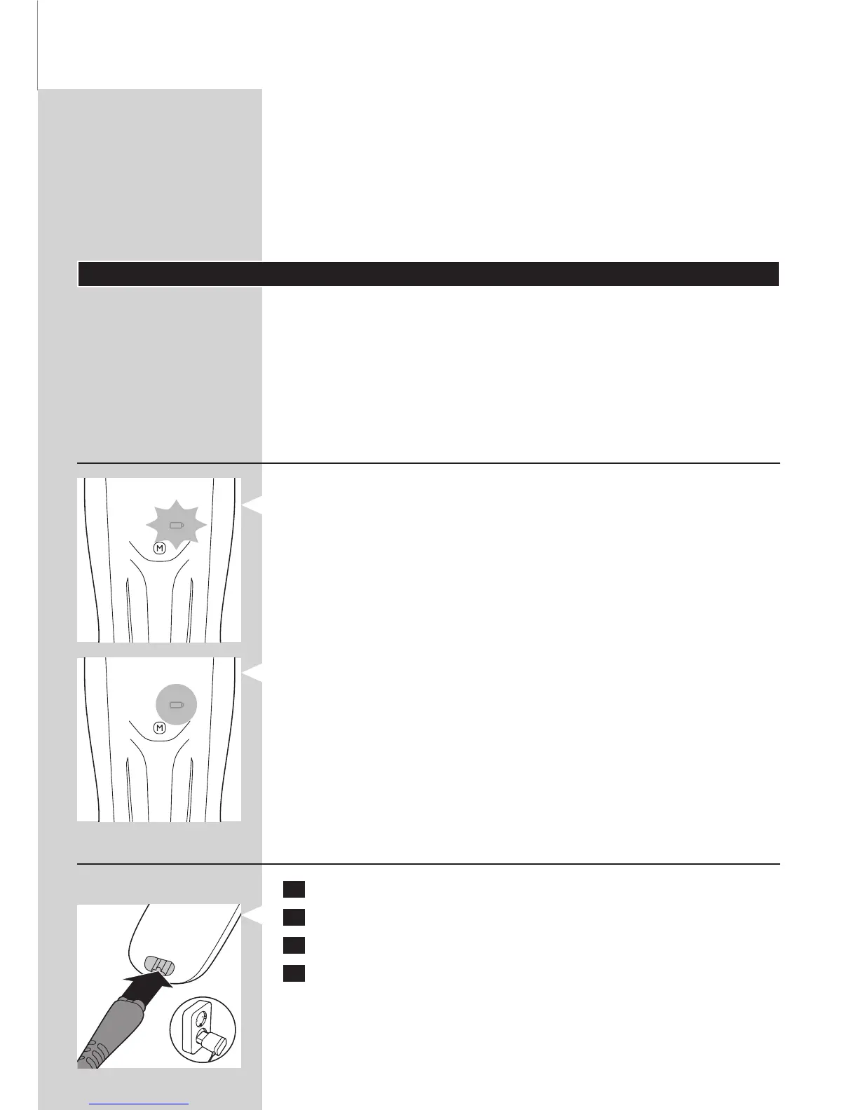 - Quando l’apparecchio è in ricarica, la spia di ricarica lampeggia a luce