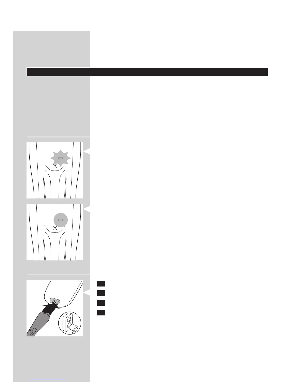 - Når batteriet er nesten tomt, begynner ladelampen å blinke oransje.