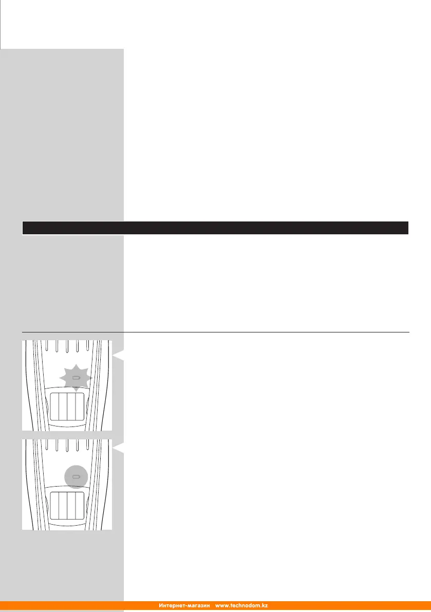 - Когато батерията е почти напълно изтощена, индикаторът за