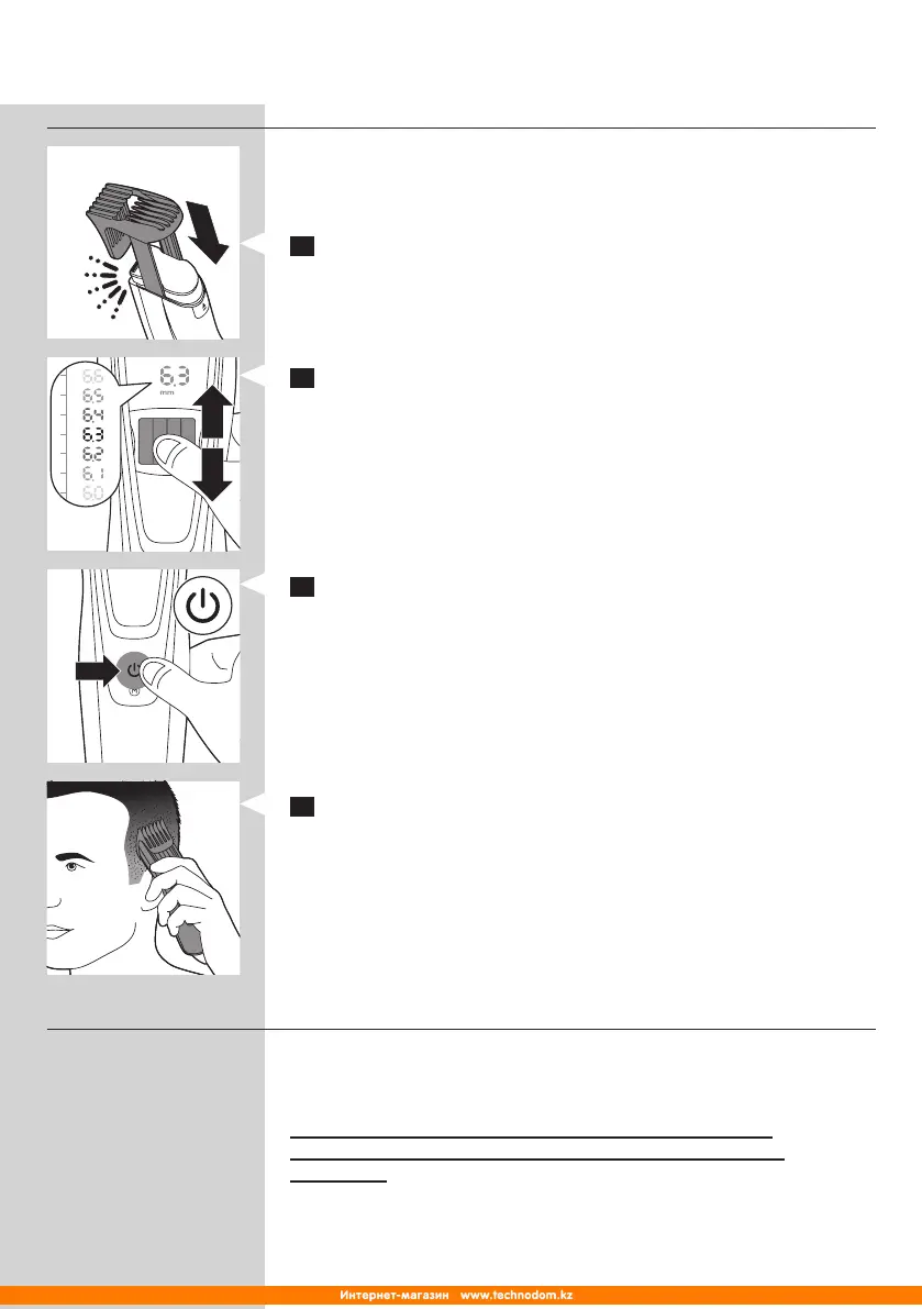1 Поставете един от гребените на уреда.